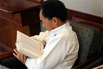 One of the beauties of Innersearch is that each day unfolds in a magical and mystical way, with a short "down time" scheduled each afternoon. While waiting for our next bus, Barney Lu continues to read Gurudeva's books.Ganesha murthi