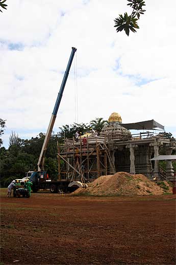 Today big news at the Aadheenam was the dome lift for the West Chinna Gopuram....