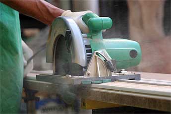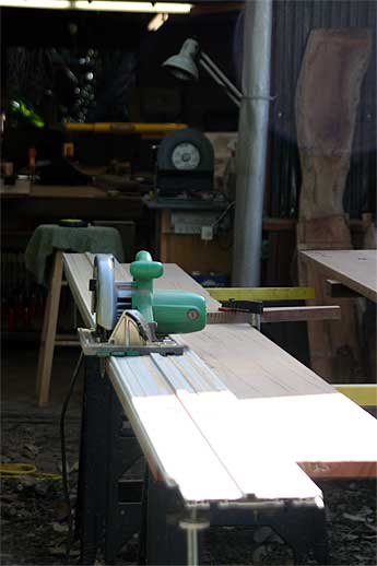 You clamp on this long guide and you have a special face plate on a skill saw and away you go. It is a simple and innovative invention. In a few minutes, the heart of a tree has a perfect straight edge....