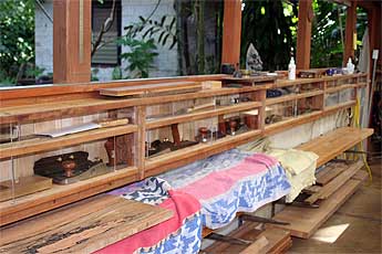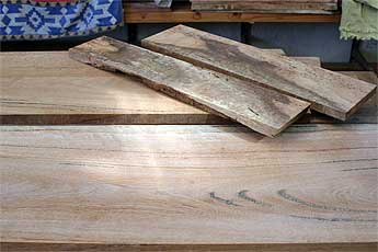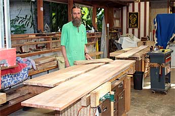 A switch from the natural world of plants... we take you to our carpentry shop were we are beginning to utilize some lumber that was milled from a fallen tree years ago. This is a very beautiful blue gum mahogany "Rainbow Eucalyptus" ... very, very hard wood, that has cured and is now going into use in the "Java Cafe..."