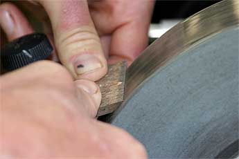 Sharp tools are a key to good wood working. This slow moving large radius grinding wheel gets you 95% of the way with just a minimum hollow grind. Then you finish off on a flat surface.