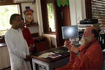 Our special guests today, Dr. Shan Shanmugavadivel from Toronto - President of World Saiva Council, Canada Branch and the new Secretary General for the Saiva Council worldwide. He was in Sydney, Australia with Bodhinatha at the conference and is stopping by here at the Aadheenam on the way home with his wife. He is a dentist by profession with a keen dedication to Saivite culture and tradition.