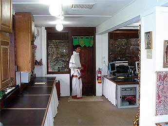 "Today our Malaysian youth, 16-year-old Nutanaya, served in the Ganapati Kulam. Here he is entering the publications building to begin his day."