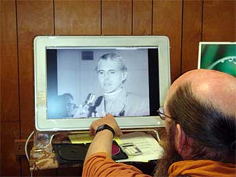 One of the amazing discoveries of the day was a few seconds (about four) of Gurudeva which were part of a documentary by the History Channel. Here Arumugaswami has captured the short image for our archives. A rare video glimpse of Gurudeva from the year 1958, when he was just 31 years old.