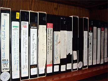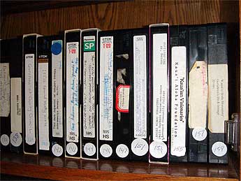 Here we have a look at the shelves in the Cedar Room. These are the VHS tapes which over the past three years we have digitized onto DVDs.