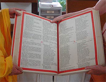 An amazing book has arrived at the monastery from India. It is a volume containing the eleven Samhitas, or hymn sections, of the Vedas.