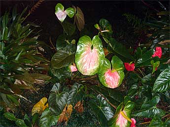 The anthuriums look different in the dark.