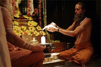 Bodhinatha arriving for the homa...