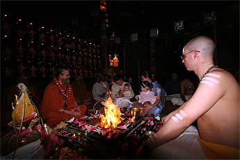 Sadhaka Jivanandanatha does the homa today.