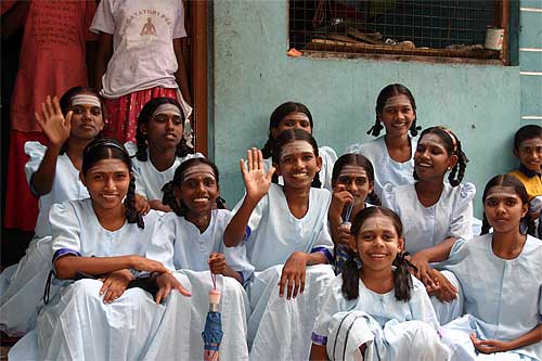 There are also funds for ashrams and spiritual leaders, for temples around the world, for printing of religious literature and many other projects. Several orphanages benefit from grants from HHE. Here at the girls at the Sitthandy Girl's Home in Sri Lanka.