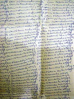These mantrams were painstakingly hand-written during Sivaratri last month.