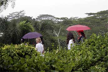 About a 80 or so 6th grade children from the Kappa Middle School came here today on their "Hindu Temple field trip". Despite the rain they were in joyful spirits and were fascinated with the stone carving out at Iraivan Temple. Each left with a small piece of granite stone.