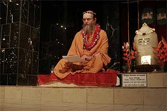 Sun One begins with a dynamic talk by Bodhinatha after today's homa.