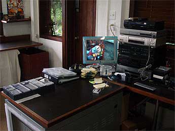 Taking them from Mini DV tapes to DVD, a necesary precaution since magnetic tapes deteriorate in the humid island weather.