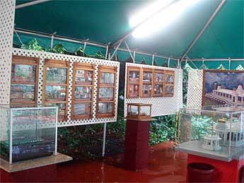 Inside Sadhaka Dandapani has worked hard lately to renew the exhibition displays, lots of new images to give visitors a visual history of Iraivan.