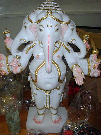Down at the Pillaiyar Kulam we discover the ubiquitous Lord Ganesha in his white marble form.