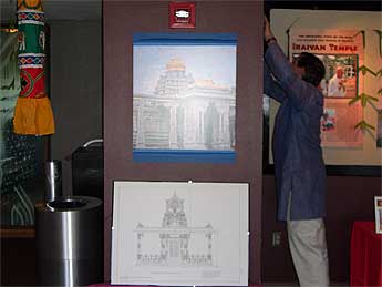 Our members had filled the lobby with Iraivan information. Kulapati Deva Rajan and other mission members fill the lobby with Iraivan info