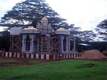 One monk took a journey to Muruga Hill, passing the special observation glasses that allow many visitors to see Iraivan from a distance.