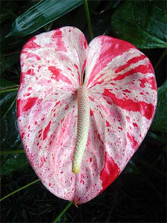 A Peppermint anthurium shows its Siva-Shakti colors.
