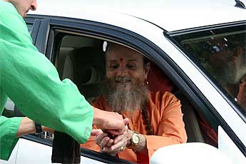 It is Sun One again of our second phase of Sadhu Paksha. Bodhinatha is off for a five day trip to Toronto with Sannyasin Yoginathaswami. Here he presents his passport as part of our long-standing mandatory last minute check for "all documents on board?" before departure.