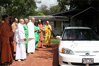 At 11:30 we went off to say aloha to them both. You can watch the video and see Paramacharya Ceyonswami offering naivediam to the bali peedam and see Bodhinatha depart for the airport as the monks wish him well on this short journey. Just four nights.