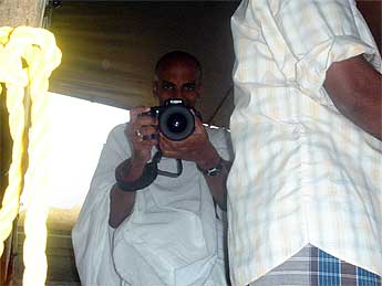 Palaniswami took Paul to the Iraivan Temple site, climbed up the ladder to the roof only to find another photographer there on the scene.