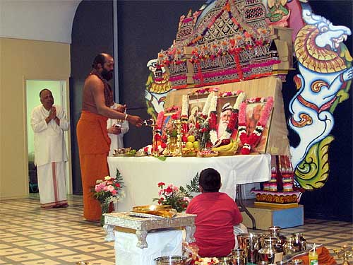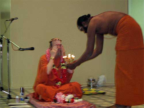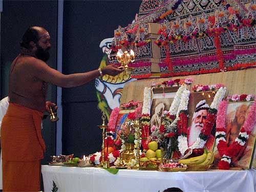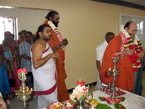 We have another excellent series of photos from Toronto. Here is Bodhinatha arriving for the special function in honor of Siva Yogaswami... more pictures below.