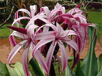 Nearby an extraordinary Day Lily blooms for the first time this year. The flowers are huge, about a foot across.