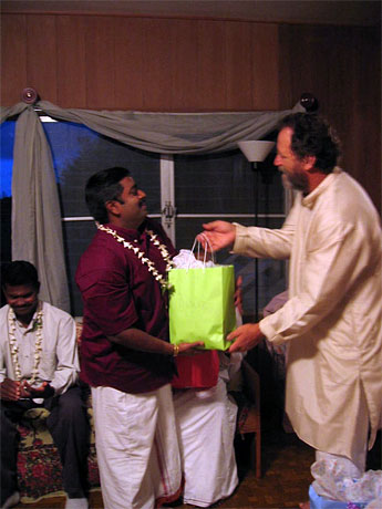 Satya Subramaniam has been serving this month in the Siddhidata Kulam and has learned the intricacies of food picking--where to find all the fruit, making sure it is ripe. He cited how impressed he was "I'm really impressed with how organized the Siddhidata Kulam is... and they have to be, they have dozens of projects and a million tools and things are coming up to be handled daily."