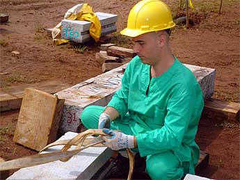 Two teams are required for each lift, one above to receive and place the stones as they arrive and..