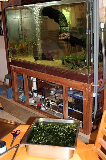 Inside the Aadheenam we have a room adjacent to the Kitchen. It is a dining area that Gurudeva himself dubbed as "Java Cafe." Acharya Kumarswami has been working on this area for several years. One of the feature Gurudeva wanted to see was a fish aquarium. We have had a salt water aquarium in the past. It was a bit of a challenge to maintain, so now Paramacharya Ceyonswami has spearheaded