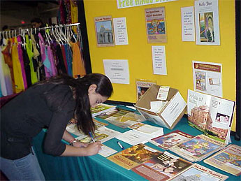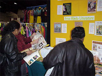 At the booth they walk away with our WWW flyer, which has all the web contacts. Later they receive their packet of booklets in the mail: Ten Questions, Home Shrine, Hindu Parenting and more.