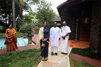 This pilgrimage party has come to Kauai to bless the marriage of Luxman Sunder and Sharmila Rajan. The Rajan family are from Florida. Luxman and Sharmila met on their own, but as it turned out both families are from Jaffna, Sri Lanka and are now brought together by this union.