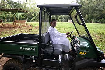 Dushyanthan Sunder tests one of our new utility vehicles. We upgraded to Kawasaki "mules."
