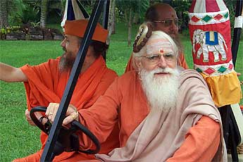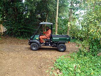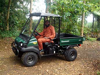 Gurudeva too enjoyed driving around with our small vehicles to survey the property and progress.