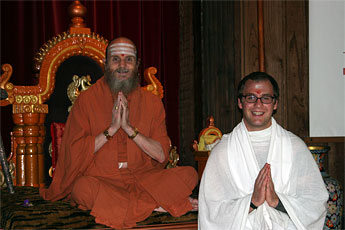 Arash and his friend are from Sedona. They have been attending the morning Siva puja for the past week and today had darshan with Bodhinatha. This is their third visit to Kauai.