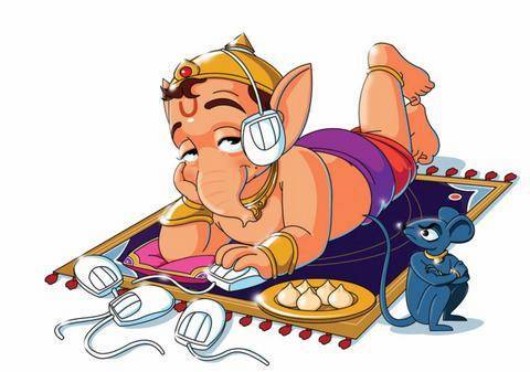 A charming Ganesha was sent to us today. Ganesha's mushika (mouse) is clearly peeved at his new interest.