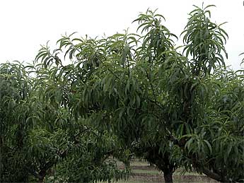 Here we are at the Barsana dham peach orchard. Take a close look at the peaches. You have to squint to see the small green peaches.