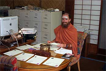 At the Aadheenam today Sannyasin Saravananathaswami is working on the annual Guru Purnima mailing.