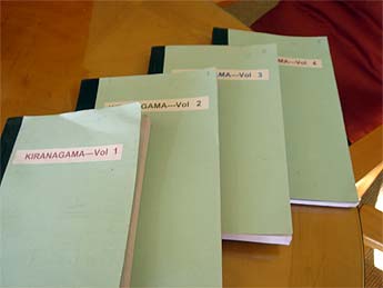 That goal has not been abandoned, and Bodhinatha has continued the search. Today the fruits of that effort were rewarded with a four-volume copy of the Kirana Agama, in English, which arrived from India.