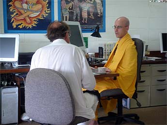 This morning was also Ralph Whitten's last day. He and his son Yogi Japendranatha took a long hike and had wide-ranging discourses on dozens of topics from science to birth control, from monastic life to intelligent design. Safe journey home, Ralph!