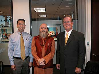 Bodhinatha with Halbert Hargrove Russell's president Mr. Russ Hill (on the right) and our account advisor Mr. Stan Lee at their office in Long Beach, California. They are our Hindu Herritage Endowment investment advisors.