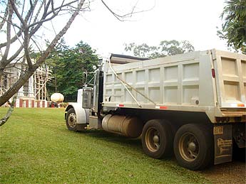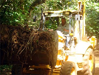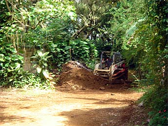 Dennis Wong supervises the dump. His driver got stuck, but the monks pulled them out with our tractor.