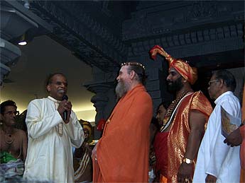 Dr. Ram Kishen Bachandani a very devout Shiva bhaktar and retired physician from Jabalpur, Madhya Prador in Central India came with his family. (elder man, center) Dr. Ram devoted his life to treating the poor and disabled people of Tamil Nadu. Today he had an opportunity to practice his Tamil talking to the Shilpis although it has been many years since he spoke that language.