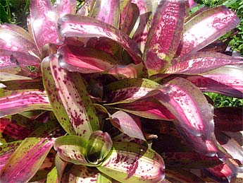 This is "Picasso," an aptly named bromeliad, relative to the pineapple and splattered with a wild design that looks like spilled paint.