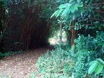 Off through our tunnel of wild guava trees leading us toward Iraivan temple.