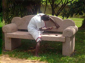 We took a stroll out into the gardens. Here is a small Nandi worshipping Siva near our Lotus Pond.