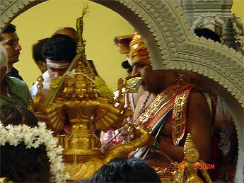 In the afternoon of the Kumbhabhishekam of the Montreal Murugan Temple Bodhinatha several devotees came for darshan at the hotel lobby.