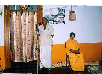 A Kottam elder Mr. I. Velayutham welcoming Sri Saimatha.