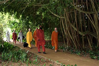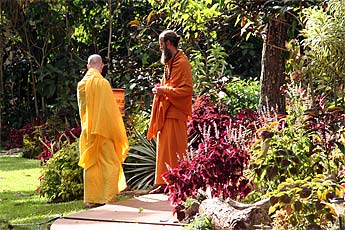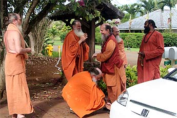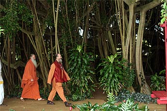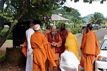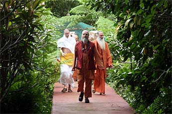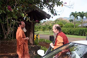 Bodhinatha and Yoginathaswami flew to Kauai the next day. Monks are on their way to greet him. The pictures tell the story